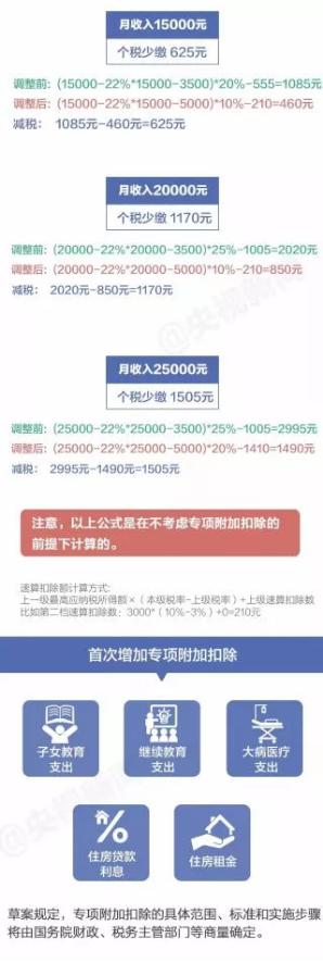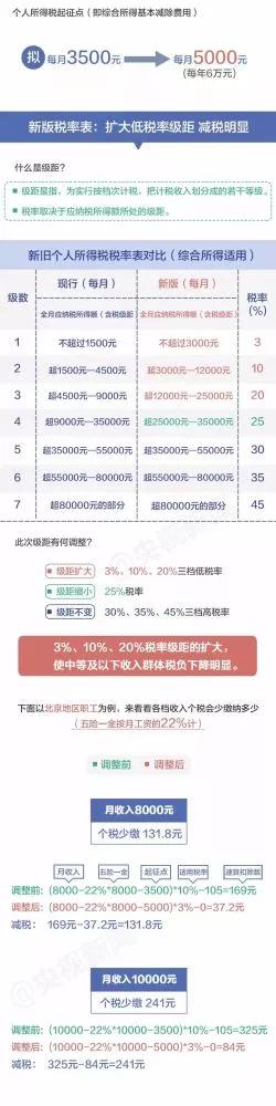 “起征点”上调,税率结构优化调整,一系列改革动作后,你每月会少缴纳多少钱?一张图看懂↓
