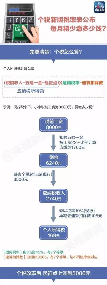 个税新版“税率表”公布 你每月将少缴多少钱