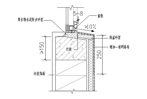 2.3门窗下槛应用聚合物水泥防水砂浆嵌填密实。
