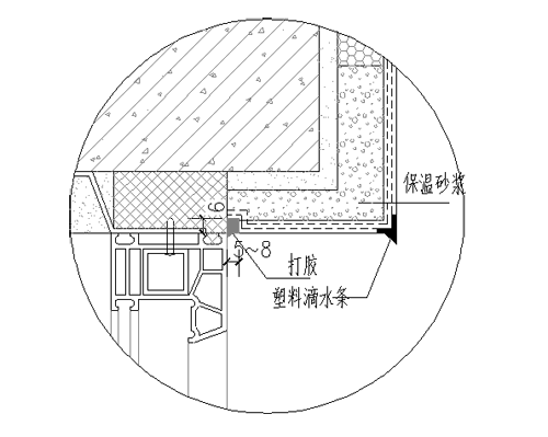 2.6门窗顶滴水线可采用成品阳角滴水线条,鹰嘴或大斜面滴水线,大斜面坡度不小于10%。见图2.6-1、2.6-2图。