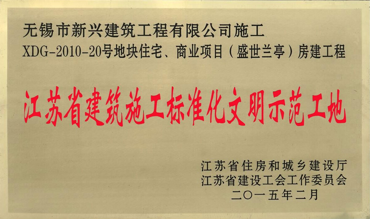 2015.02 XDG-2010-20号地块住宅、商业项目(盛世兰亭)房建工程 江苏省建筑施工标准化文明示范工地