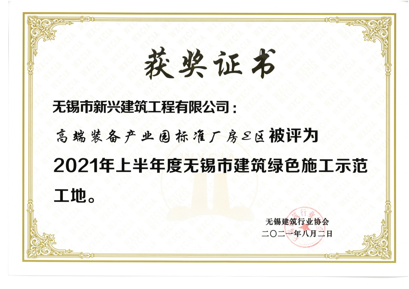 2021.08 E厂房2021年上半年度无锡市建筑绿色施工示范工地