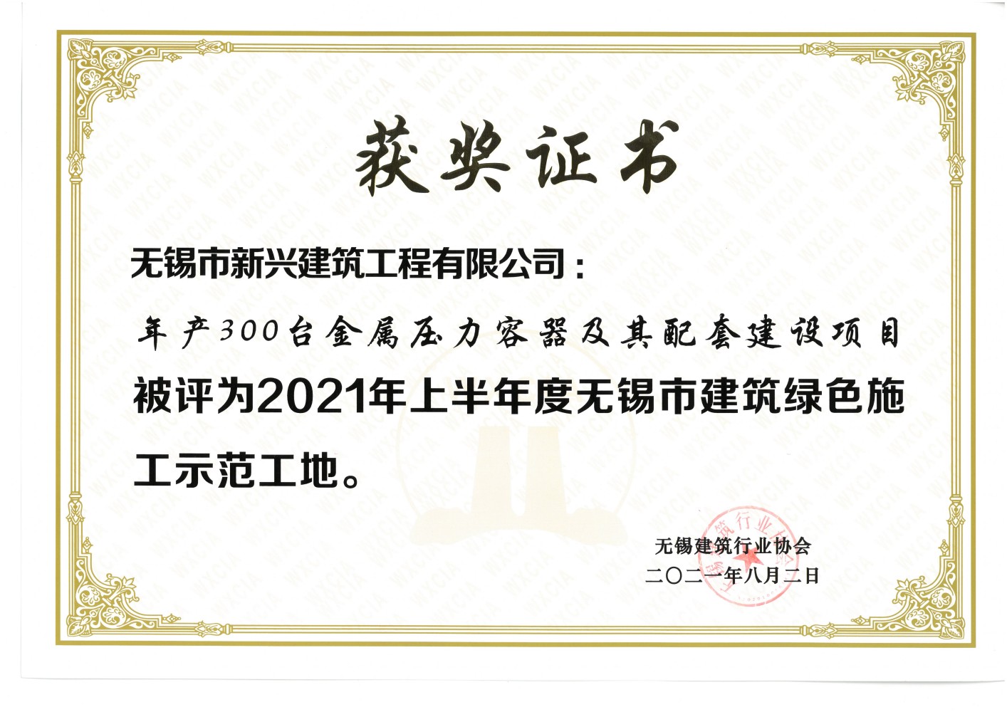 2021.08 化工装备年产300台2021年上半年度无锡市建筑绿色施工示范工地