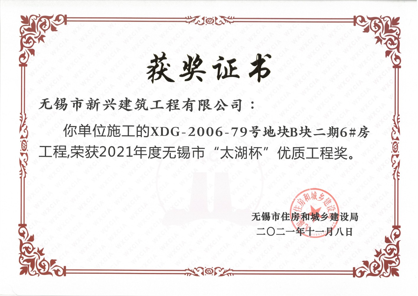 2021.11 小天鹅2021年度无锡市太湖杯优质工程奖